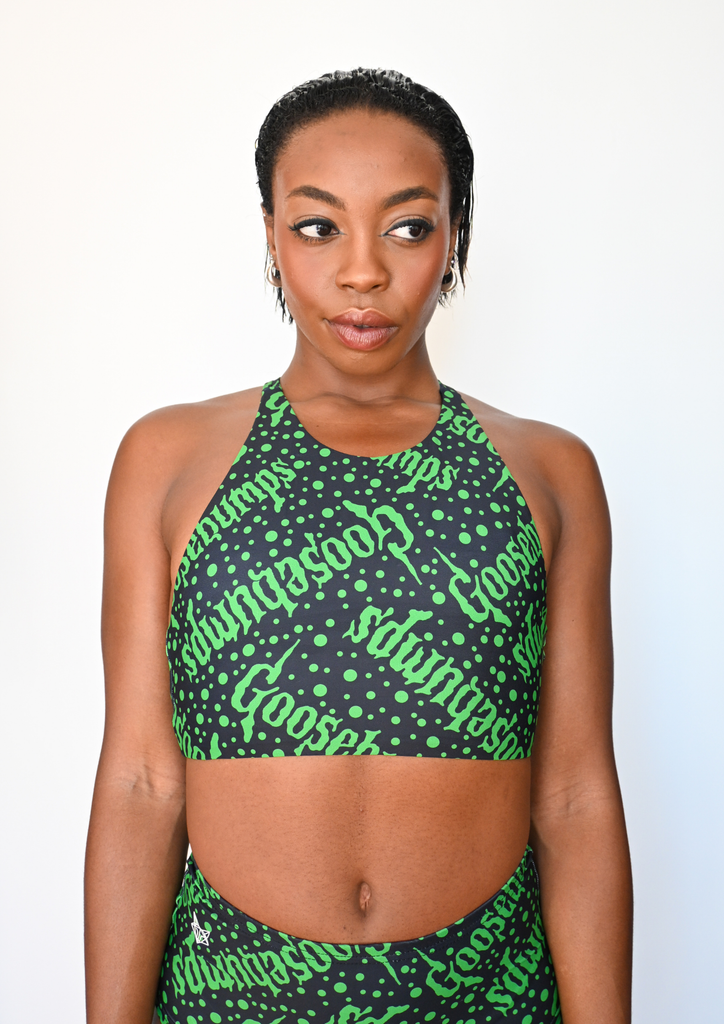 Bold Goosebumps-inspired slime print for an edgy Vixn look