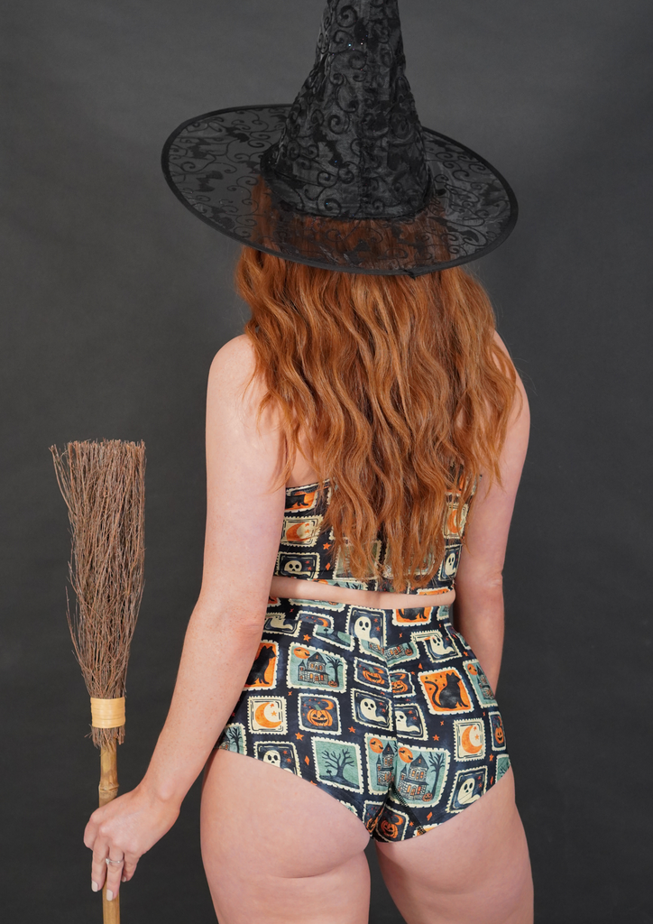 A bewitching watercolour filled with iconic Halloween symbols - black cats, pumpkins, and moonlit skies. This design will have you channeling your inner Sabrina energy and slaying whatever comes your way.