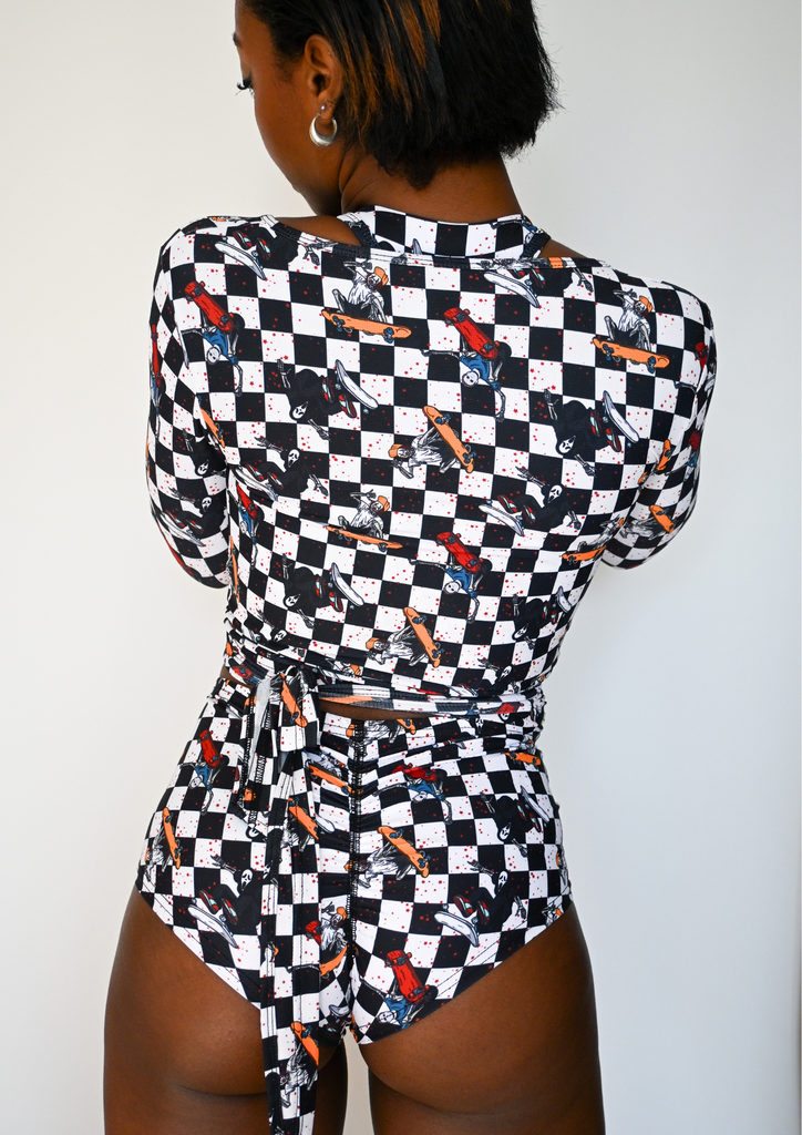 Unleash your dark side with the Dressed to Kill Bundle, featuring the fierce Thrash & Slash Dress and matching Long Sleeve Wrap Top. This killer combo is the ultimate statement look for spooky season and beyond, blending edgy, sleek, design with Vixn’s signature confidence. Perfect for days out, nights out, or Halloween events - get ready to slay every scene, unapologetically. 🖤🔥