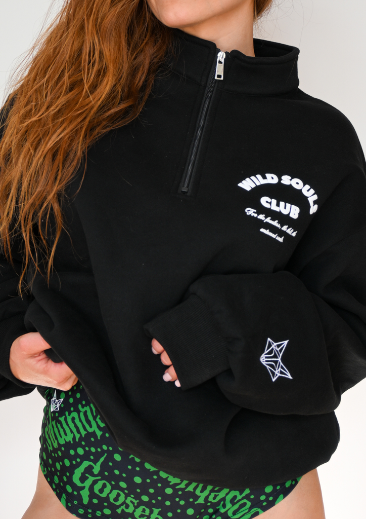Crafted for comfort with an oversized fit and soft fleece interior, the Wild Souls Club jumper is perfect for throwing on before/after training, during adventures, or while lounging with a hot chocolate on the sofa.